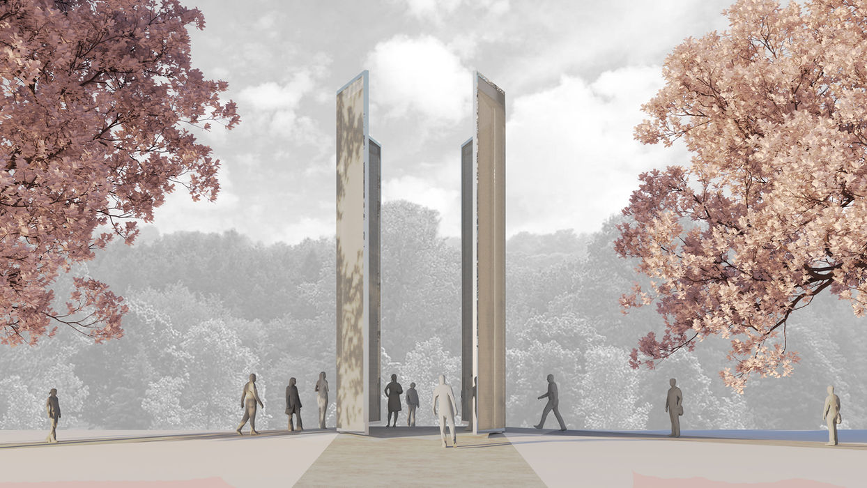 The Crossing translates the equality principle -equal rights and justice for all people- into a kinetic installation on a public square at the intersection of two paths. Four monumental pivoting doors control people’s ability to cross this space, granting or denying their right of passage at different times. While the slowly rotating doors mostly permit free movement on both paths, some configurations entirely block one as they open the other. In this case, one person’s absolute freedom to pass becomes another’s absolute obligation to concede. The longer this unequal situation persists, the more oppressive it becomes for the person who cannot advance. In staging this dilemma, The Crossing investigates absolute privilege as the origin of tyranny and exposes the interdependence of rights and obligations: nothing will change by merely declaring equal rights without also adjudicating the corresponding obligations.
